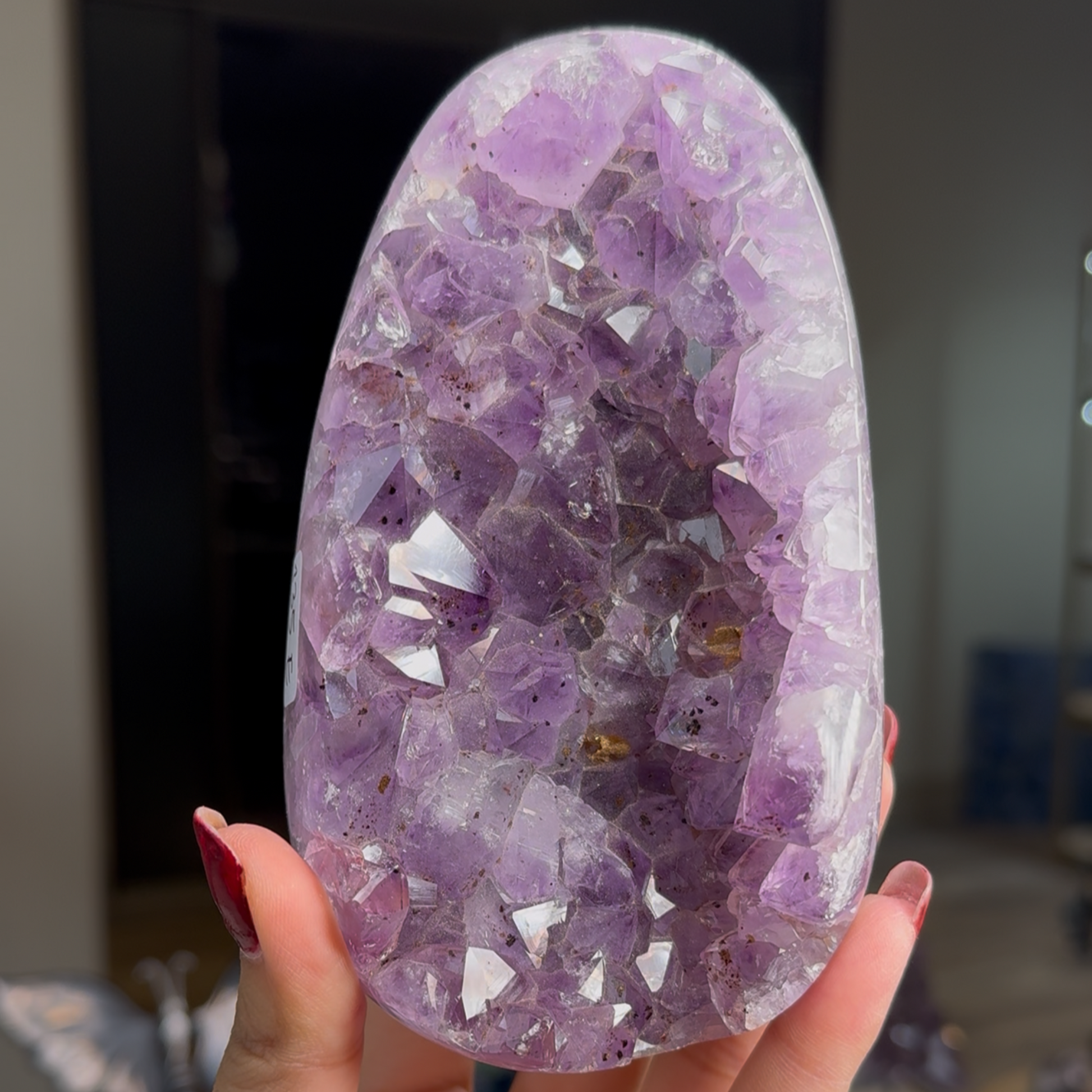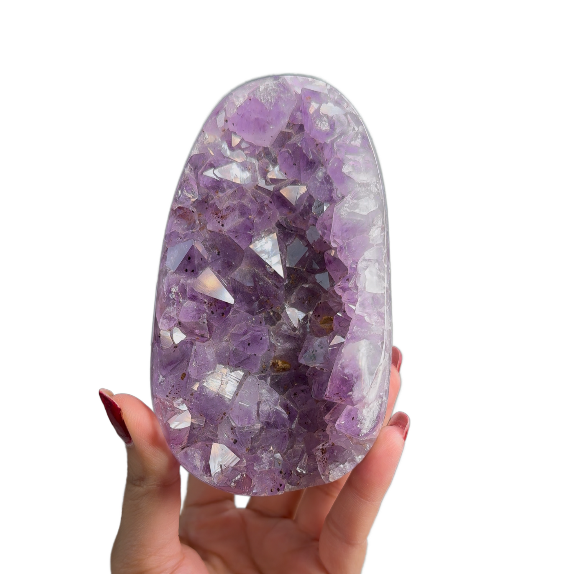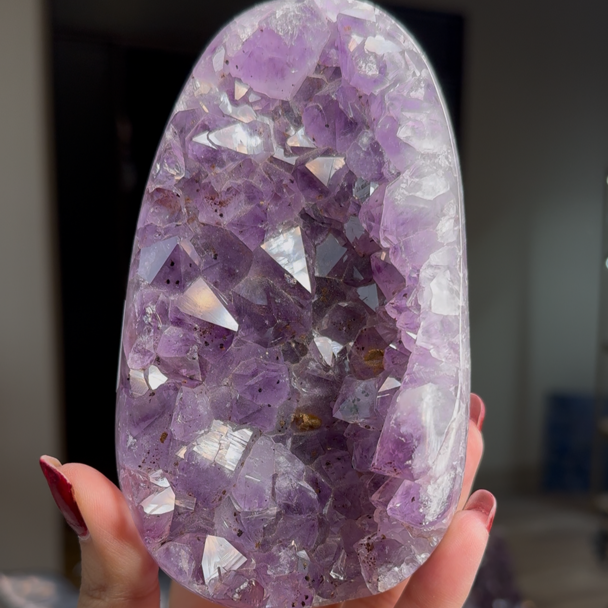 This Amethyst Egg Cluster is a unique and striking piece for any crystal collector. With its beautiful shades of purple and unique egg shape, it adds a touch of elegance and tranquility to any space. Made from natural amethyst, it is believed to bring balance, harmony, and protection.