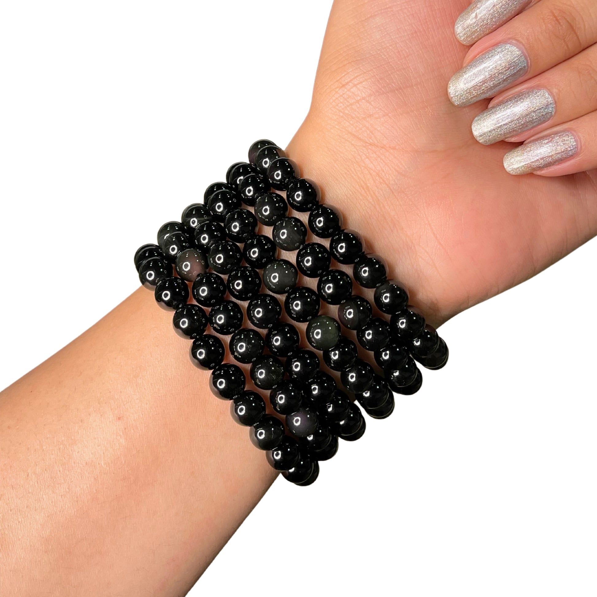 Enhance your look with this stylish Black Obsidian Bead Bracelet! This beautiful bracelet is made of 8mm black Obsidian beads that not only look great but also provide balance and protection. Perfect for any occasion!