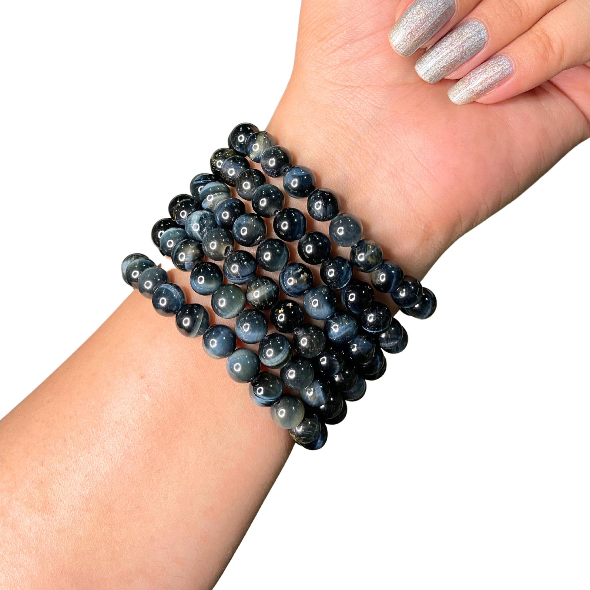 This stunning Blue Tiger Eye 8mm Bead Bracelet is made of natural stone, creating an eye-catching and unique style. With its blue and gold hues, the bracelet is sure to make an elegant statement. Each bracelet is carefully handcrafted, making a perfect addition to any wardrobe.