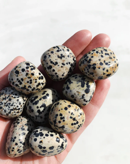 Introducing the Dalmatian Jasper Tumbles, a must-have for any crystal collection. These tumbles are made from natural Dalmatian Jasper, known for its grounding and protective properties. Each tumble is unique, making it a one-of-a-kind addition to your meditation practice.