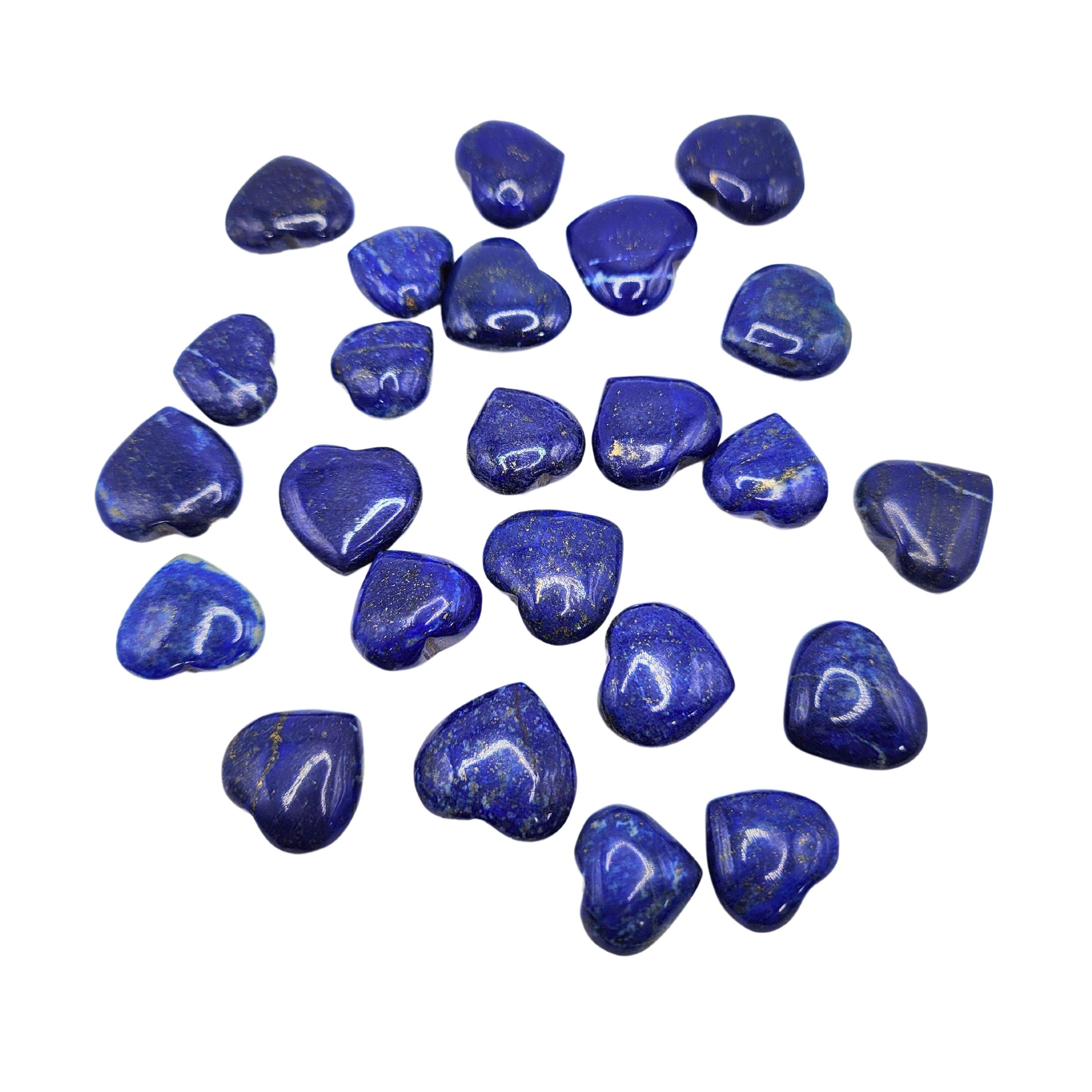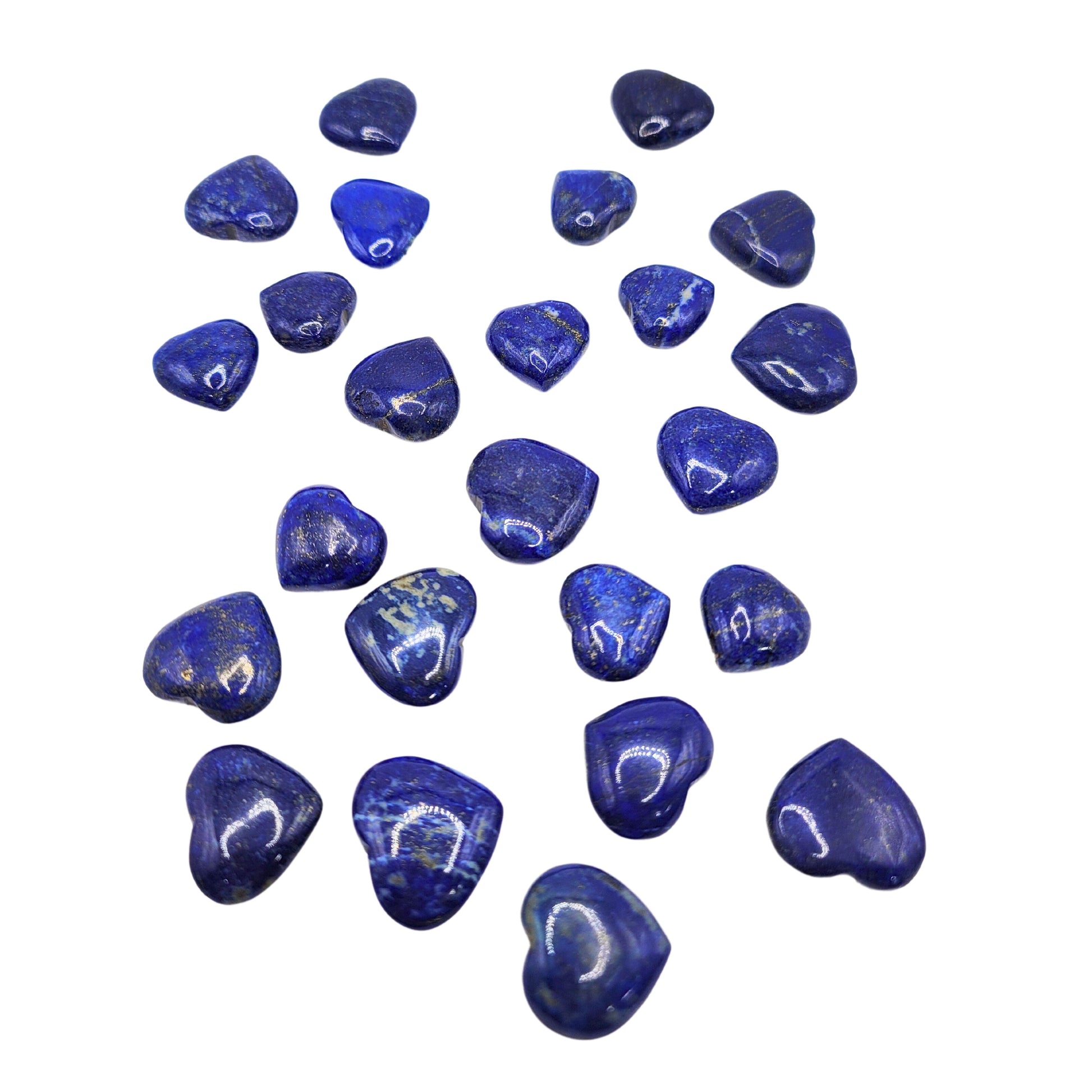 Lapis Lazuli Hearts from Afghanistan. High-grade loyal blue Lapis with natural polish. Lapis Lazuli has the mineral composition of Lazurite (blue), Calcite (white), and gold (pyrite). You will receive an intuitively chosen heart from the lot in the picture.