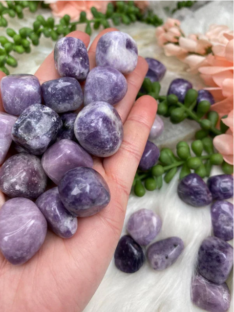 Experience the calming effects of Lepidolite Tumbles. Made from natural, violet-colored stone, these tumbles are known to alleviate stress and promote relaxation. Boost your well-being with the healing power of Lepidolite.