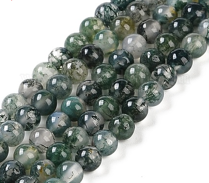 Expertly crafted from natural moss agate, this bead strand features unique patterns and earthy tones. Enhance your jewelry designs with the grounding and stabilizing energy of moss agate, a stone known for promoting abundance, growth, and stability. Each bead is thoughtfully selected for quality and beauty.