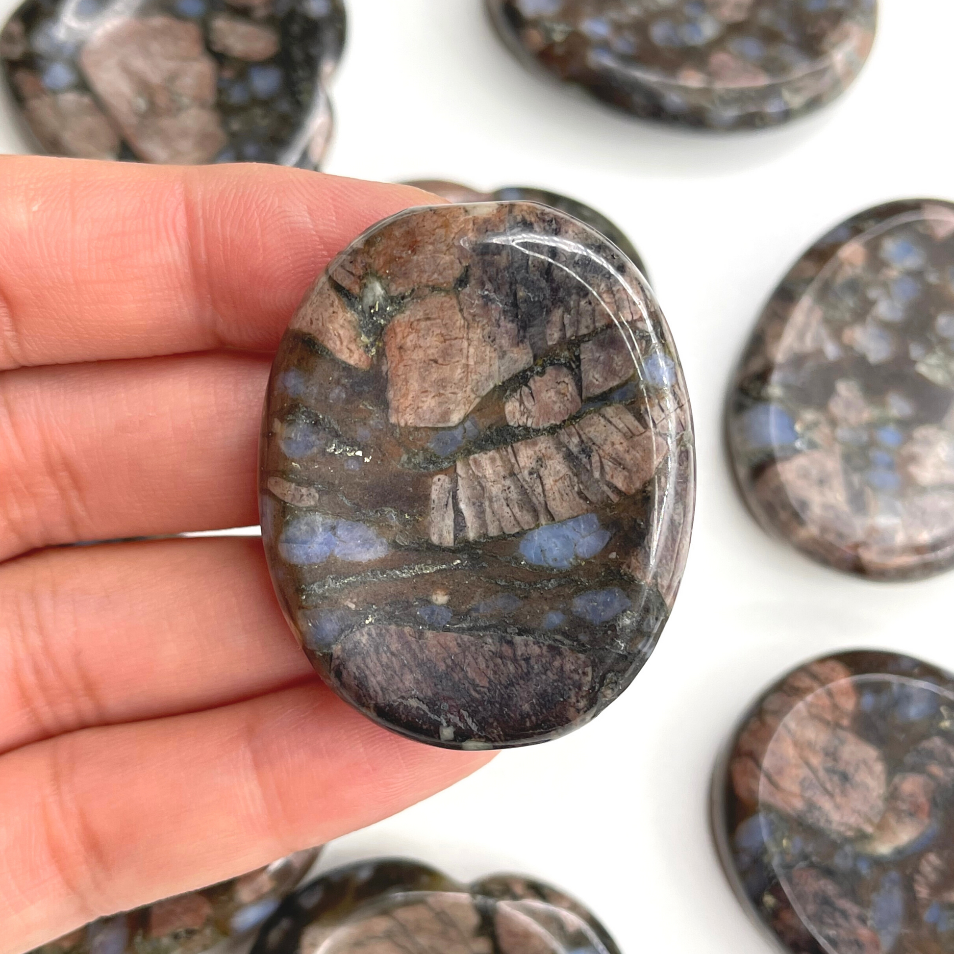 Que Sera worry stone (also know as thumb stone), is used to relieve anxiety and stress. This is a stone used by monks to distract mind from any stress and meditate. You rub the worry stone with your thumb, fingers or in your palms and can stimulate different nerve endings that promote calmness, release endorphins, and have an overall euphoric effect.